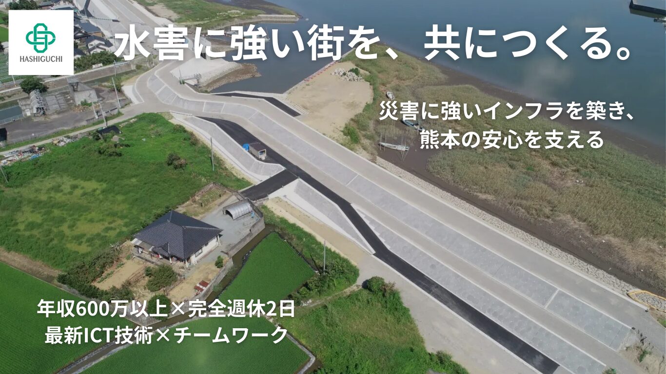 私たちは、増える短時間豪雨に備えて、白川・緑川の堤防・護岸をデータに基づいて賢く直す工事を進めています。 目的はひとつ。「浸水を減らし、命と暮らしを守る」こと。そのためにドローン・3D測量などのICTを使い、 工期を短く、品質を高く、安全に──市民の皆さまと進めます。