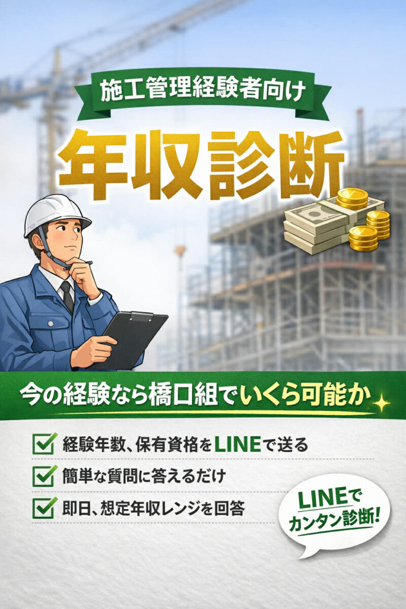 LINEでは、施工管理の経験年数や資格、これまで担当してきた工事内容などをもとに、想定年収の目安をお伝えします。
