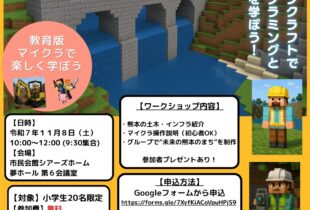 マインクラフトでプログラミングと土木を学ぼう in 熊本|小学生20名・参加無料【11/8(土) 熊本】
