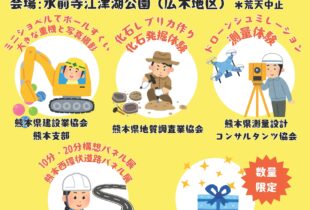 【11/16開催】熊本・水前寺江津湖公園で土木の体験会|重機・ドローン・化石あそび<参加無料>