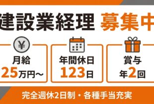 【熊本市南区】建設業経理の経験者を募集しています|土日祝休み・年休123日
